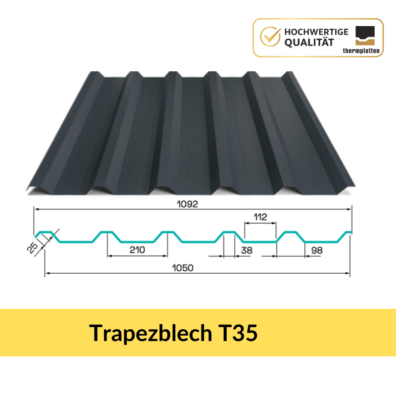 Trapezblech T35 (0,5 mm) – stabiles Dachblech für Industrie, Landwirtschaft & Gewerbe (Thermplatten)